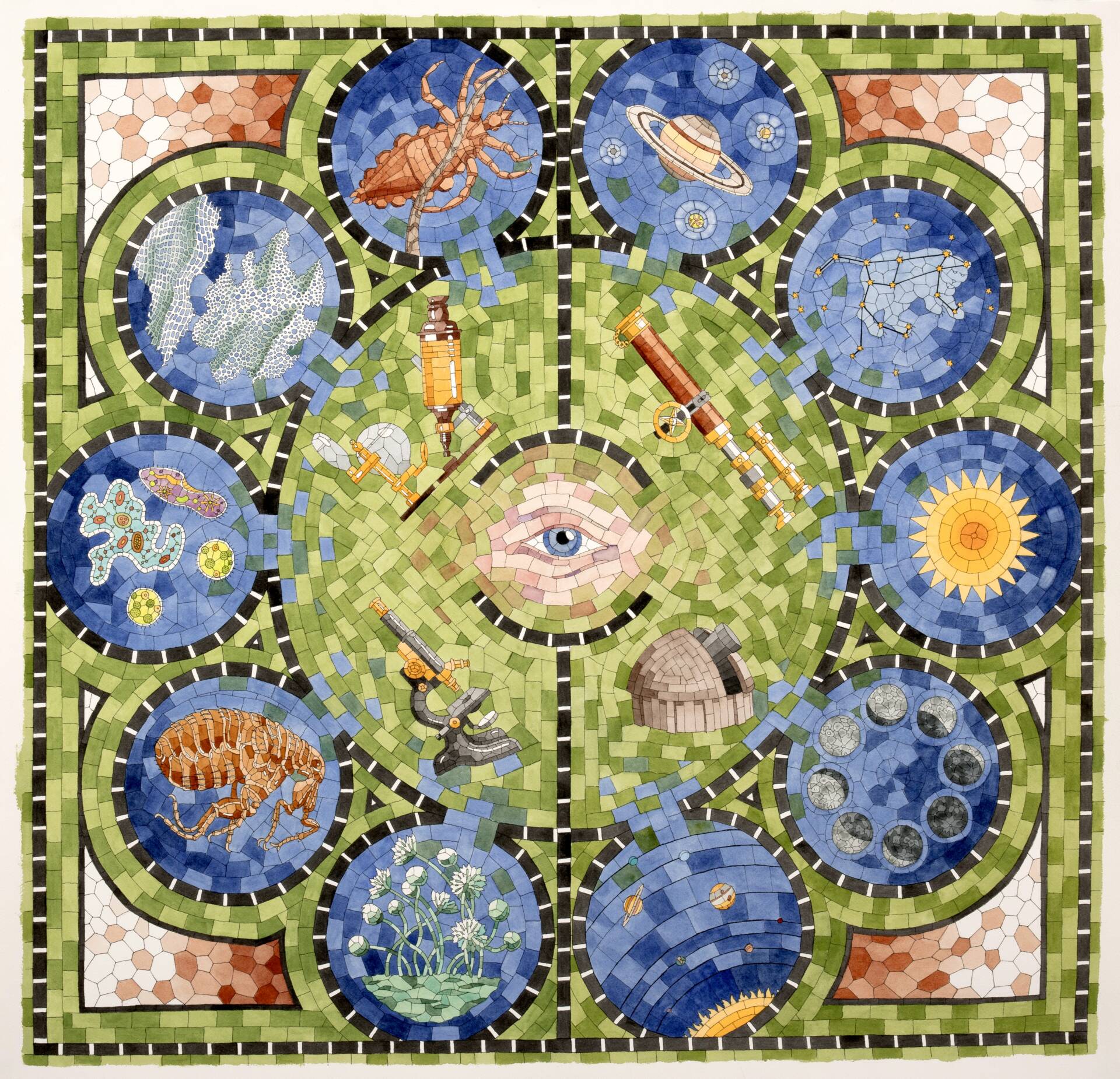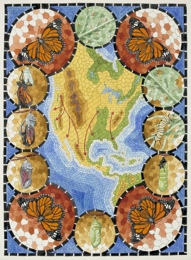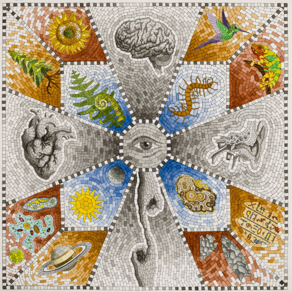 The Evolution of Knowing No. 1 , 2024 – Watercolor and pen, 26×26” (framed)