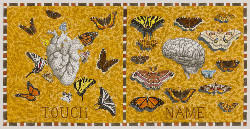 The Evolution of Knowing No. 3 – The Quarrel of Universals , 2024 – Watercolor and pen, 18×32” (framed)