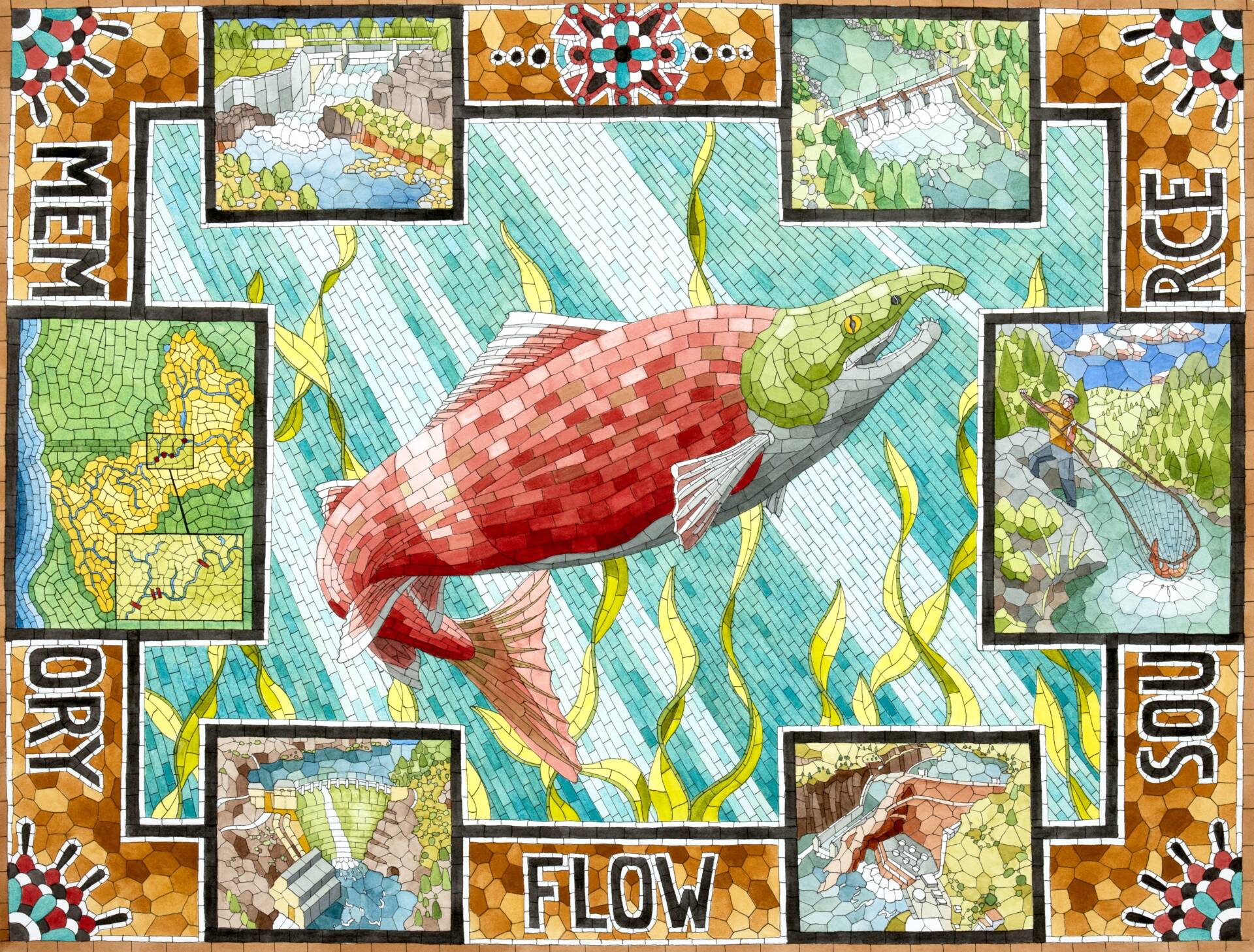 The Evolution of Knowing No. 6 – Flow, 2025 – Watercolor and pen, 24×32” (framed)
