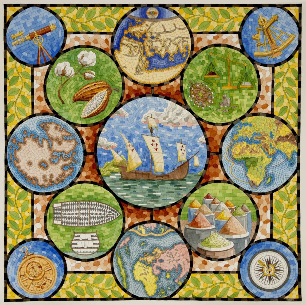 The Evolution of Knowing No. 7 – The Cartographer’s Paradox, 2025 – Watercolor and pen, 34×34” (framed)